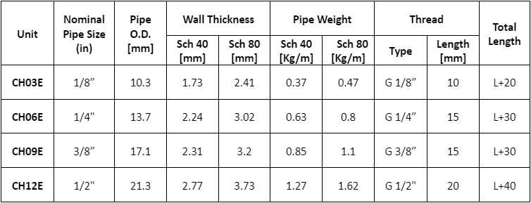 In certain cases (mainly in the CH03E assembly) copper piping can also be used. Schedulues 80 is good for working at high pressure values and mechanical bending efforts of the piping, Schedulues 40 is slightly better at avoiding pressure loses (larger internal diameter). Normally use Schedulues 80.